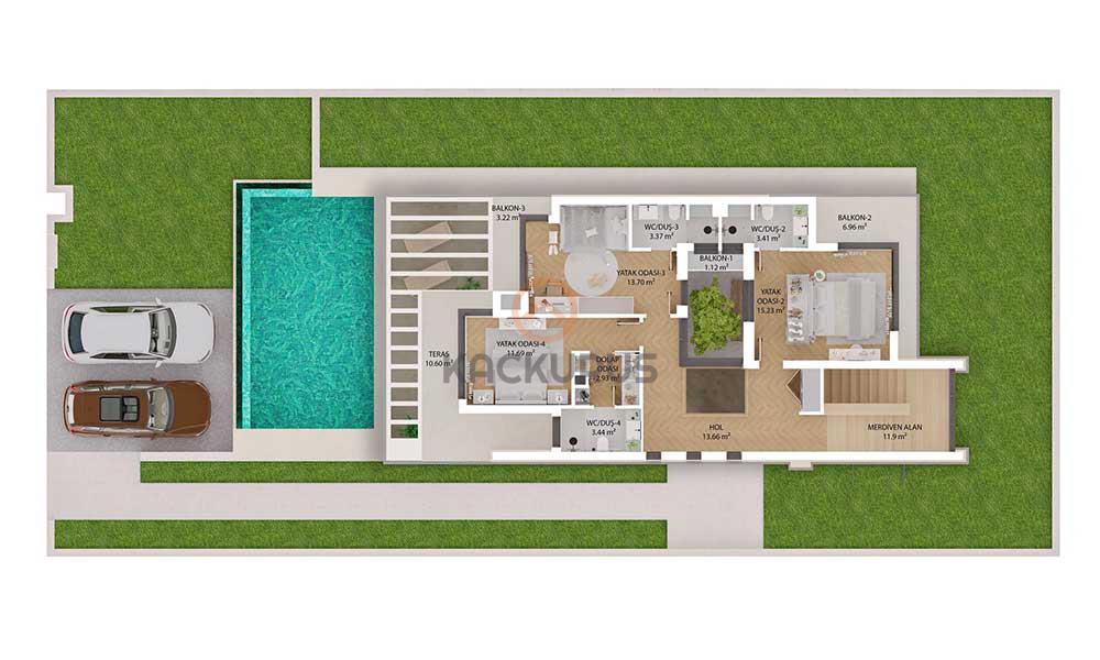 我们的B型超豪华待售别墅面积为246平方米 – 4+1,特有的内部花园将用大自然的温暖触感丰富您的每一刻。