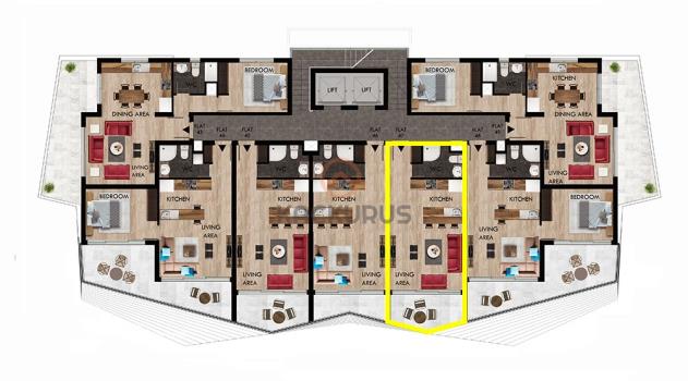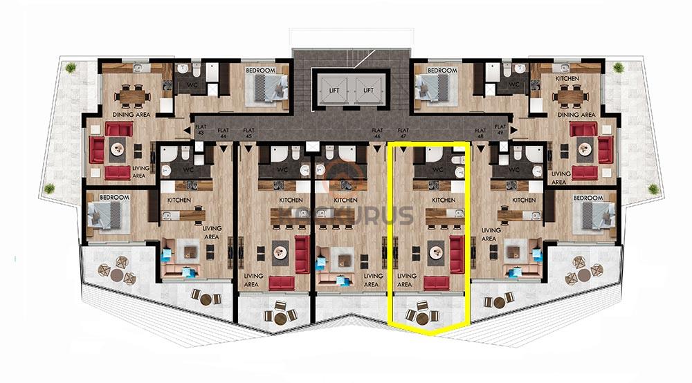 我们的豪华社区融合了İskele著名的长滩美丽风光,位于7楼的49.8平方米出售单间公寓,立即预订您的位置。