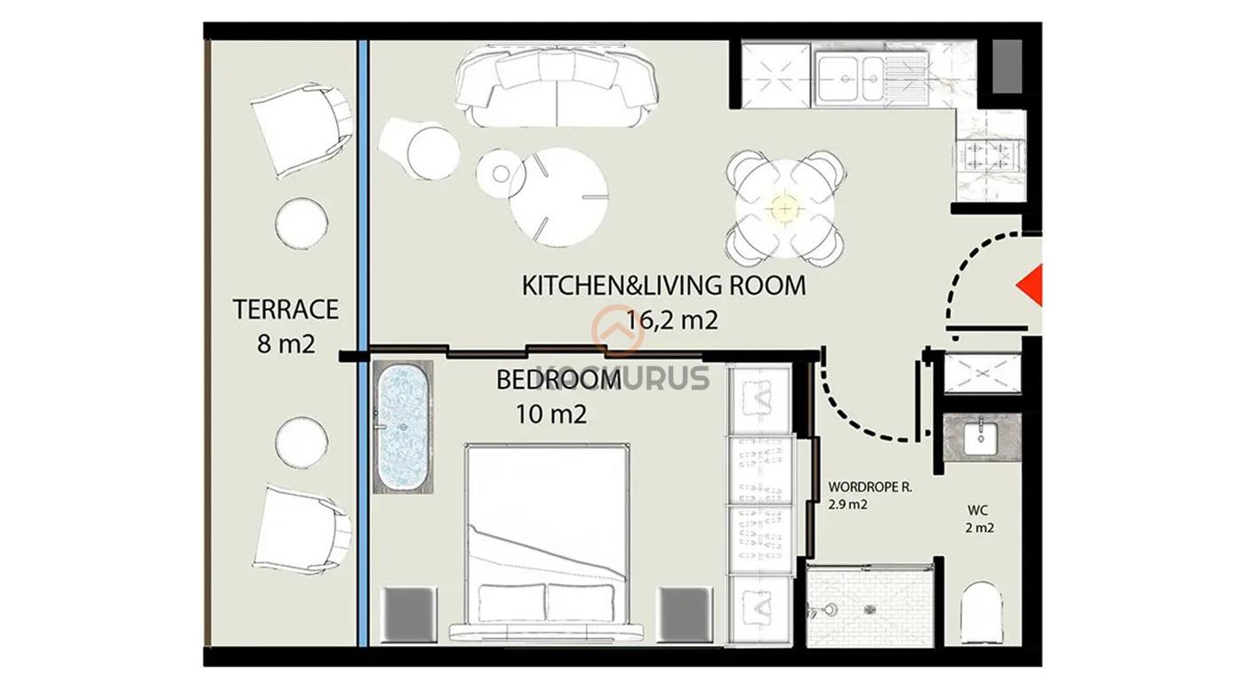 Satılık - Konut 78.00 m2 1+1 İnşaat Halinde 2026 - Aralık Teslim Bahçe Katı