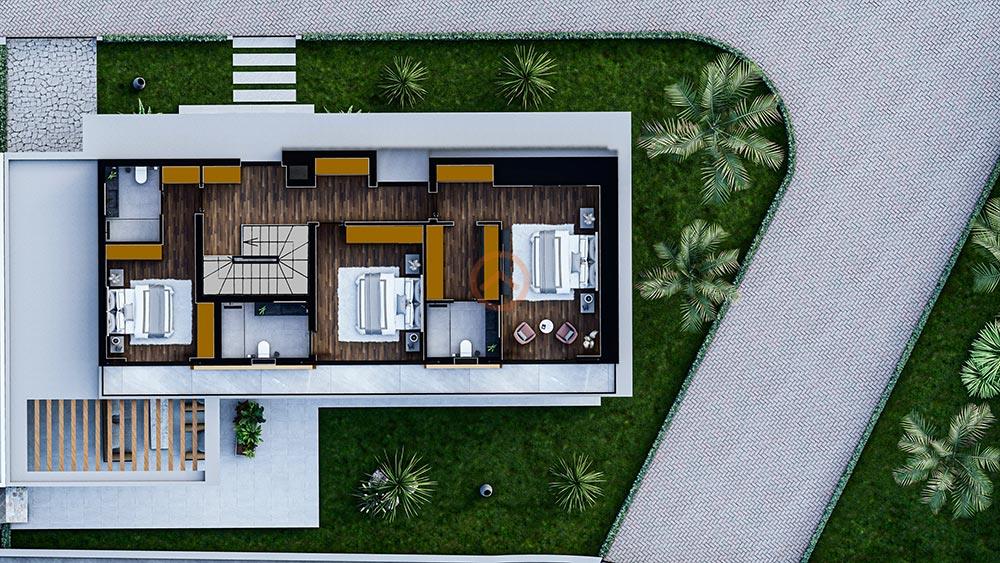 Villamızda 4 yatak odası mevcut olup, tüm yatak odaları ebeveyn banyolu'dur. Talep üzerine villaya özel havuz yapılabilmektedir.