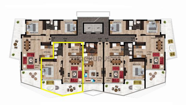 Satılık - Konut 78.00 m2 1+1 Proje Tamamlandı 2025 - Haziran Teslim 8.Kat