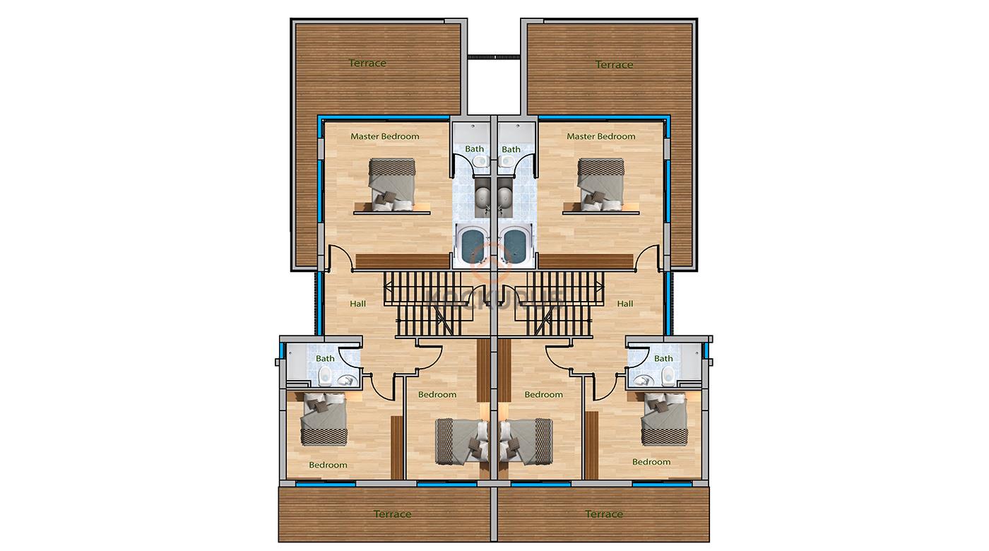 Les prix des villas jumelées 3+1 en vente dans le projet varient en fonction de l'emplacement et de l'orientation de la façade.
