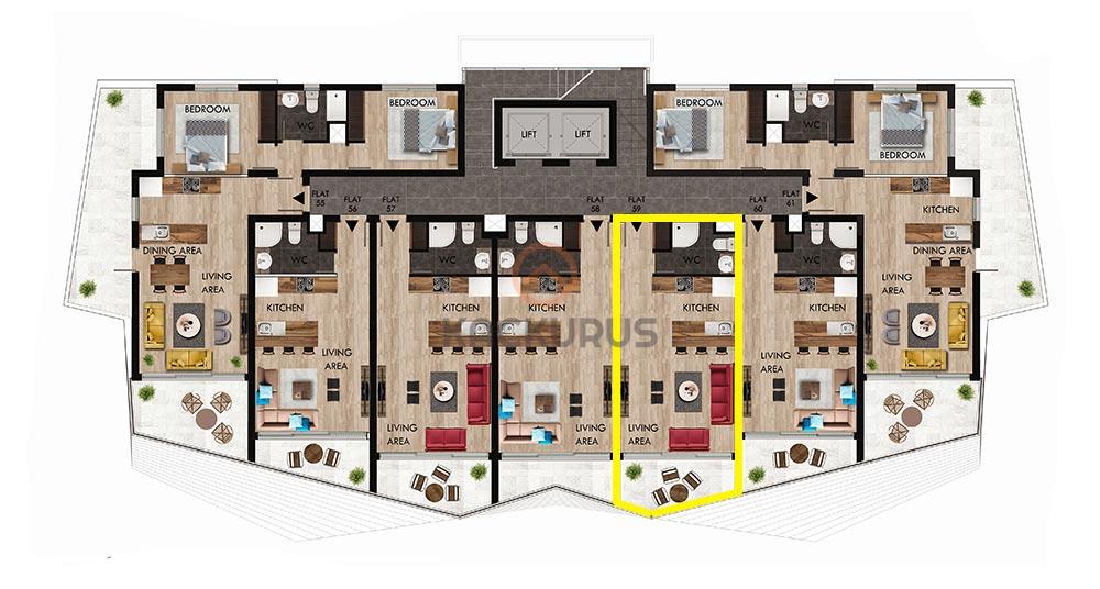 Situato nella zona in crescita di Long Beach a Iskele, questo progetto esclusivo offre più di una semplice abitazione: propone uno stile di vita moderno, immerso nel verde, con aree comuni curate e servizi di alto livello. Il complesso ospita 416 unità abitative, un hotel di lusso, centro benessere e hammam turco.