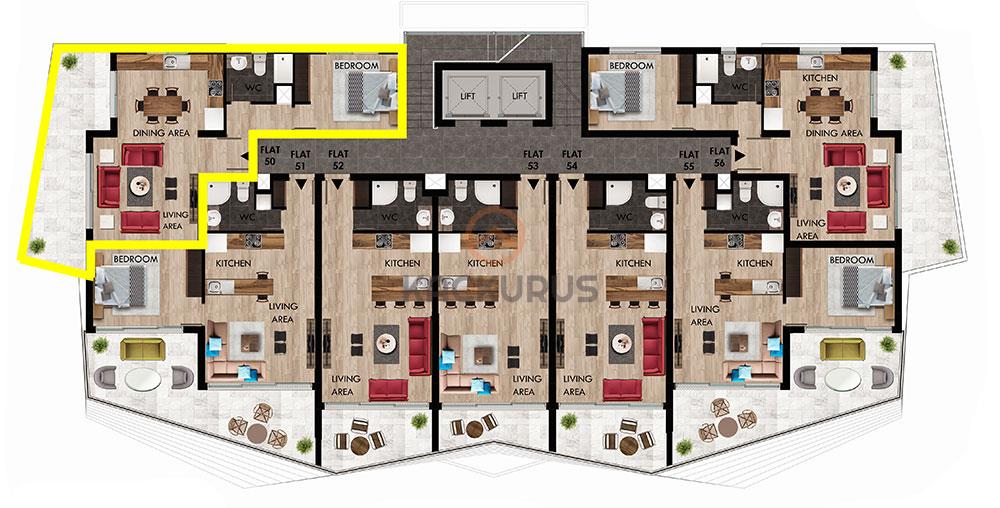 للبيع - منزل 78.00 m2 1+1 اكتمل المشروع 2025 - يونيو التسليم الطابق الرابع